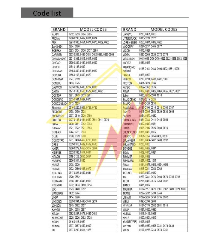 Χειριστήριο γενικού τύπου για A/C KT-1000 με 1028 κωδικούς